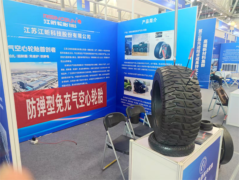 大會期間,先進技術成果轉化主題展同步開放,展示總面積達7.8萬平方米,1500余家參展企業齊聚一堂,設有序廳、軍工展區等10余個特色主題展區。江蘇江昕科技股份有限公司作為國家級高新技術企業、軍民融合企業,在此次大會上備受矚目。其展出的防彈型免充氣空心輪胎,憑借獨特的網架式空腔結構,吸引眾多參會者駐足詢問。